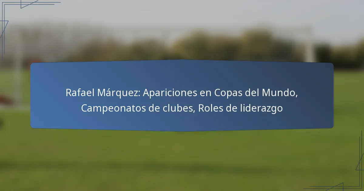 Rafael Márquez es un destacado futbolista reconocido por su extraordinaria participación en cinco torneos de la Copa Mundial de la FIFA desde 2002 hasta 2018, lo que resalta su longevidad y habilidad. A lo largo de su carrera, ha asegurado numerosos campeonatos de clubes, estableciéndose como uno de los defensores más exitosos en la historia del fútbol. Además, Márquez ha desempeñado roles de liderazgo vitales, tanto a nivel de clubes como dentro de la selección nacional de México, influyendo significativamente en la dinámica y el rendimiento del equipo.